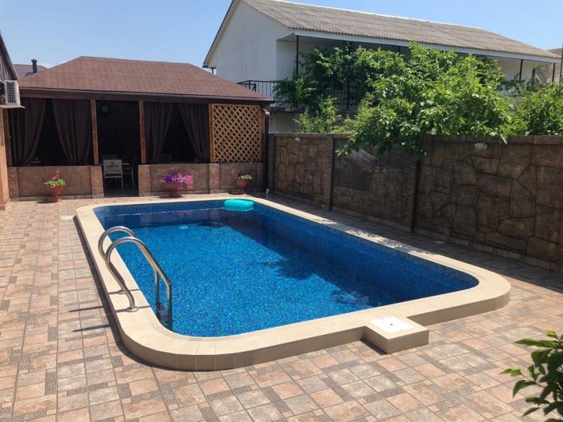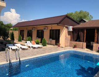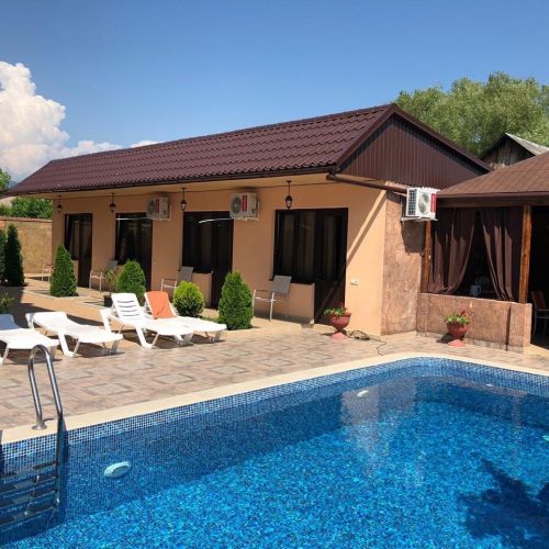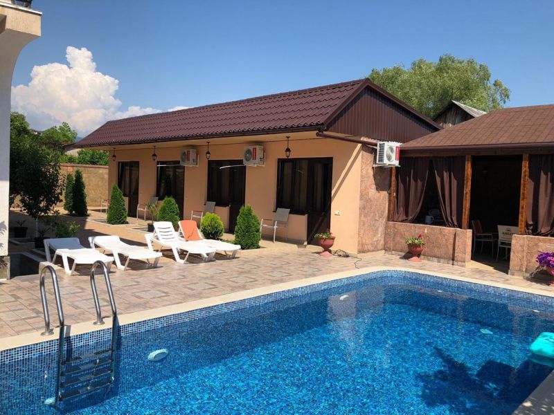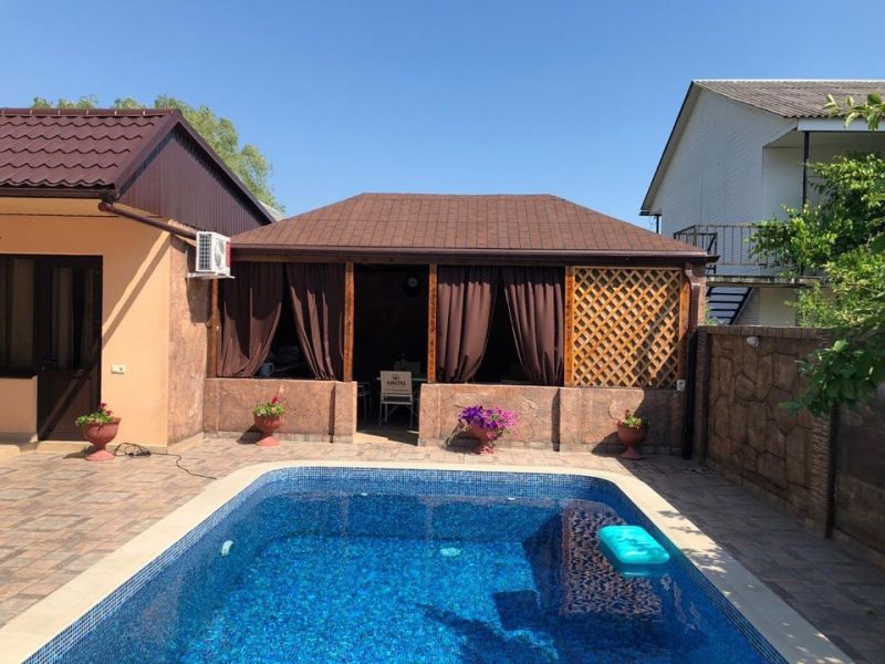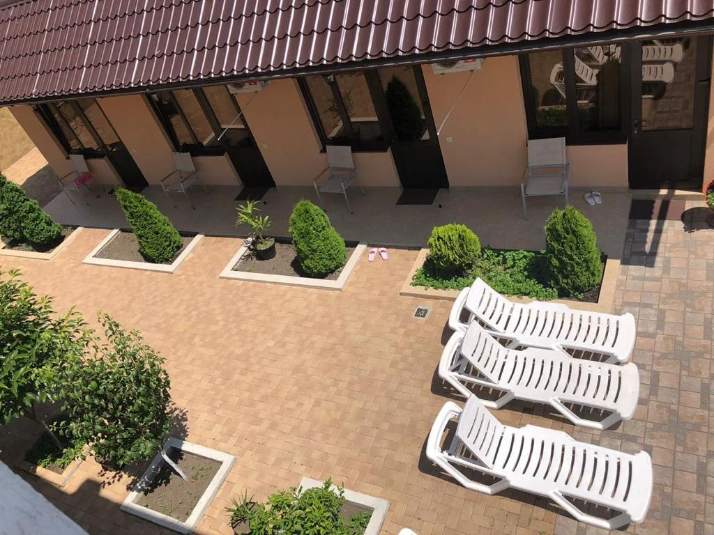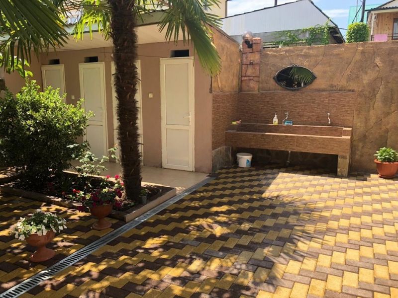 На территории оборудованы 2 укомплектованные кухни, оборудованные всей необходимой посудой, холодильником, микроволновкой. Так же есть бассейн с шезлонгами, мангальная зона, беседка, парковка, настольный теннис, интернет Wi-Fi. Для постояльцев имеется зеленый дворик с пальмами и цветами.