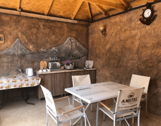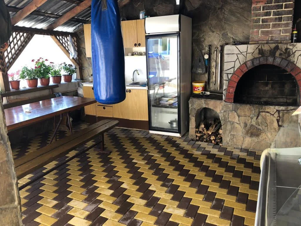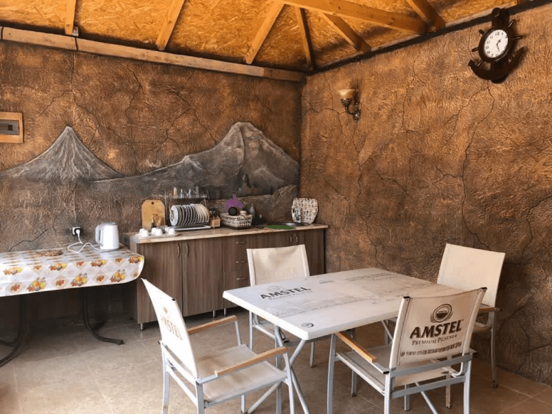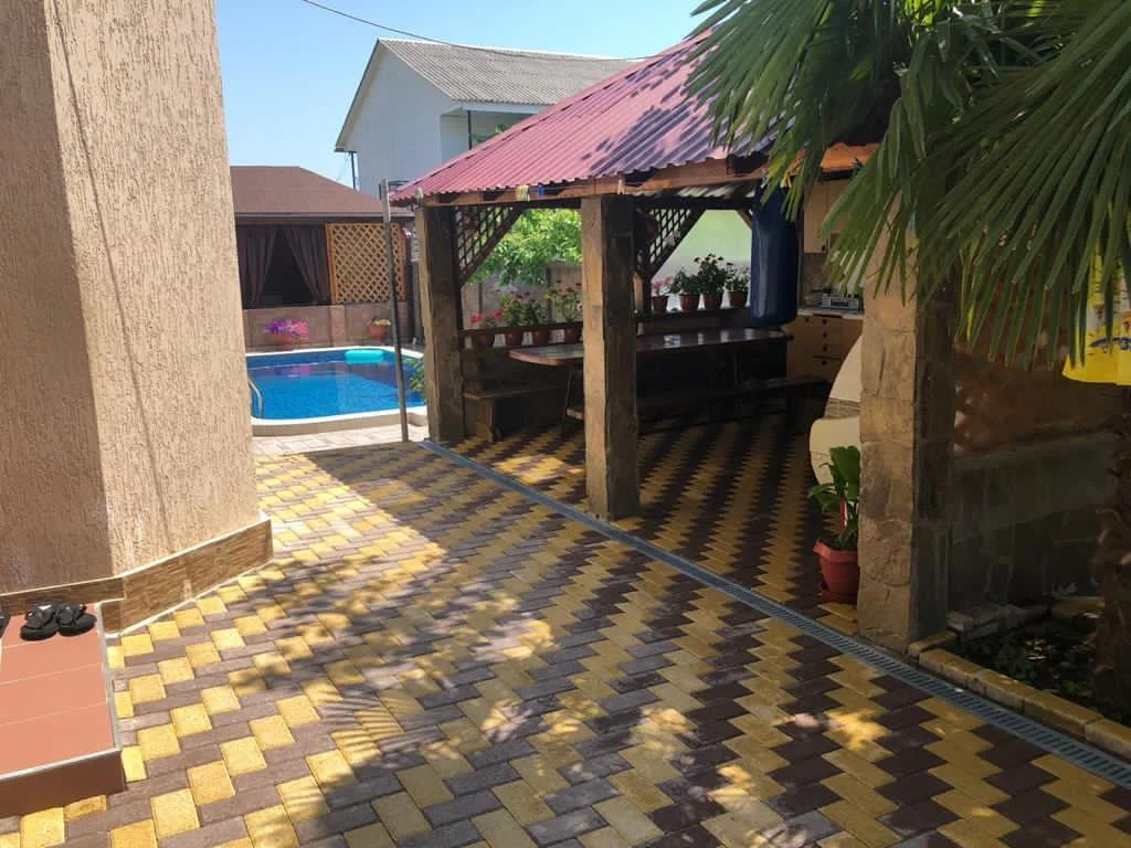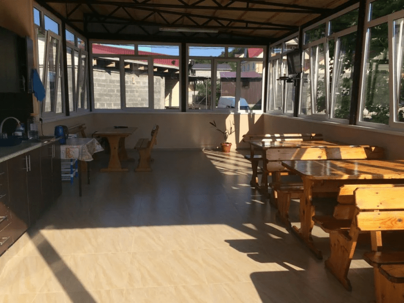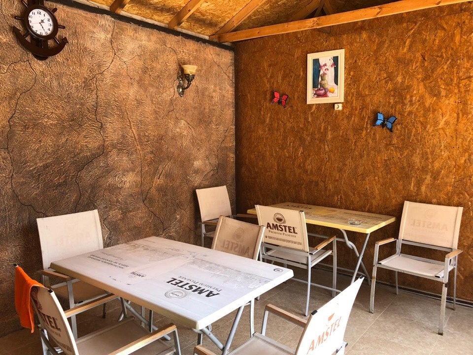 На территории оборудованы 2 укомплектованные кухни, оборудованные всей необходимой посудой, холодильником, микроволновкой. Так же есть бассейн с шезлонгами, мангальная зона, беседка, парковка, настольный теннис, интернет Wi-Fi. Для постояльцев имеется зеленый дворик с пальмами и цветами.